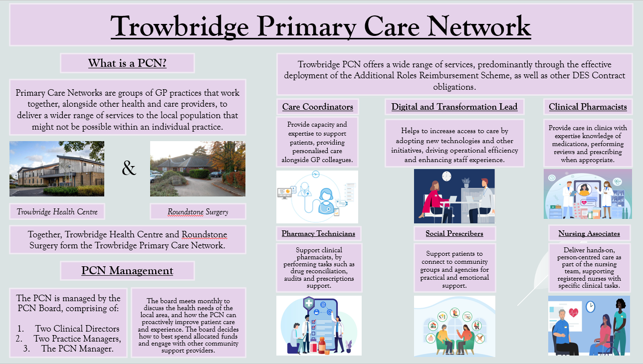 Please see the following poster to understand more about out Primary Care Network and what services it provides for Trowbridge.